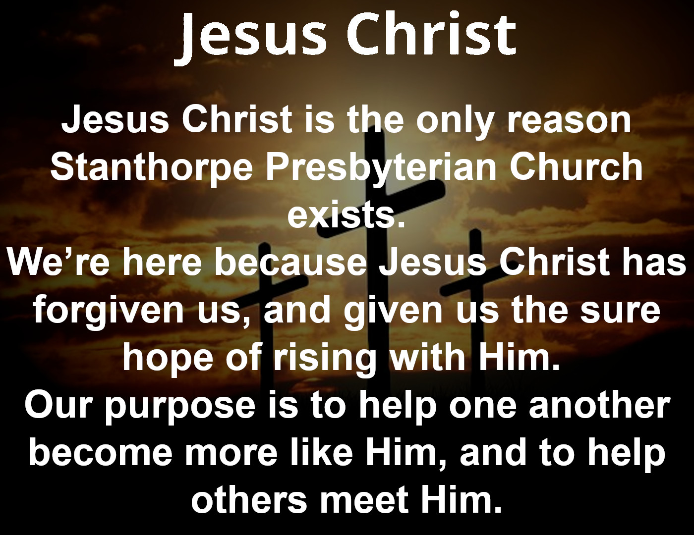 Jesus Christ is the only reason Stanthorpe Presbyterian Church exists. We’re here because Jesus has forgiven us and given us the hope of rising with Him. Our purpose is to help one another become more like Him, and to help others meet Him. |